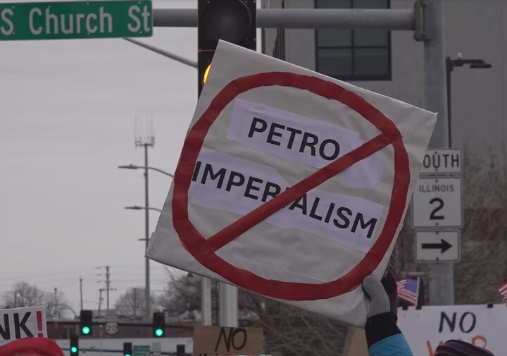 معترضان آمریکایی در ایالت ایلینوی، علیه اقدام نظامی این کشور در ونزوئلا تجمع کردند.